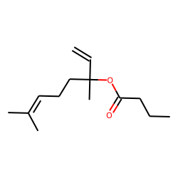 Find more compounds similar to 1,5-Dimethyl-1-vinyl-4-hexenyl butyrate.